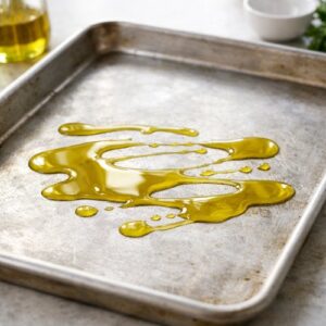 - Grab a rimmed baking sheet (the sides matter here—they catch drips). Drizzle the olive oil across the center in enough of a surface area to hold your salmon. If you're using a whole fillet, you might need to tilt the pan slightly to spread the oil around. This prevents sticking and adds richness to the finished dish.
